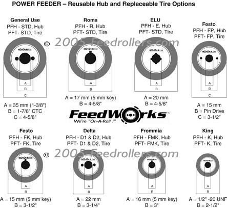 Call with your applications. PFH-STD (general use) fits Holz-Her, Powermatic, Maggi, Steff, Forest City, Univer,Oliver, Rockwell and many others. PFT-STD is made to fit the reusable PFH-STD hub.